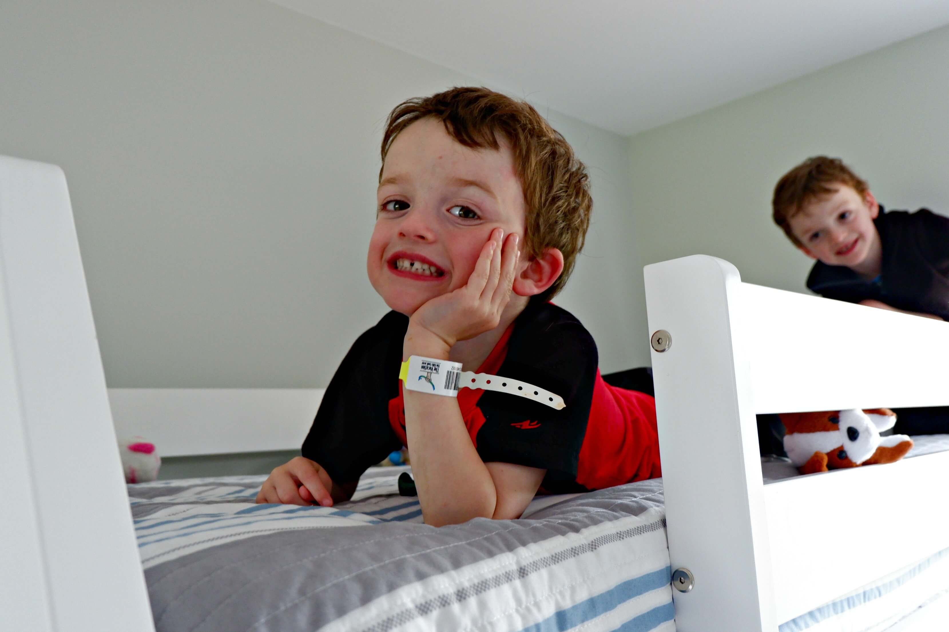 We are lucky to be enjoying The Vacation the Kids Took Over at a cottage provided by Cavendish Bosom Buddies (this is a sponsored trip, meaning our cottage stay and many of our activities were provided in exchange for us sharing about our experience, but all commentary and opinion are unfiltered!). This package includes a three-night stay in a brand-new three-bedroom cottage (perfect for traveling with both the kids AND the grandparents!) and these lovely little yellow bracelets that give us unlimited access to 10 of Cavendish Beach’s best attractions, and discounts at another 10!